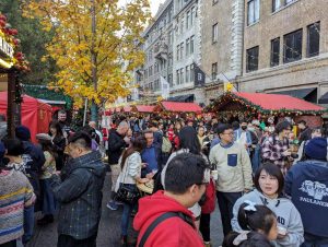 1年に1回のささやかな楽しみ、寒さのなかで、震えながらビールを飲むことを想定していましたが、暑すぎて拍子抜け。全然ドイツのクリスマスっぽくないー。なんなら、汗かきながら、ビールを飲みますが、1時間半ほどで、人口圧力に耐えられず撤退します。